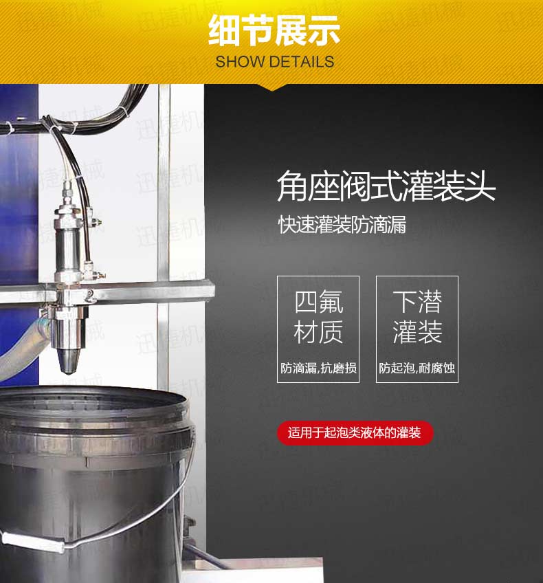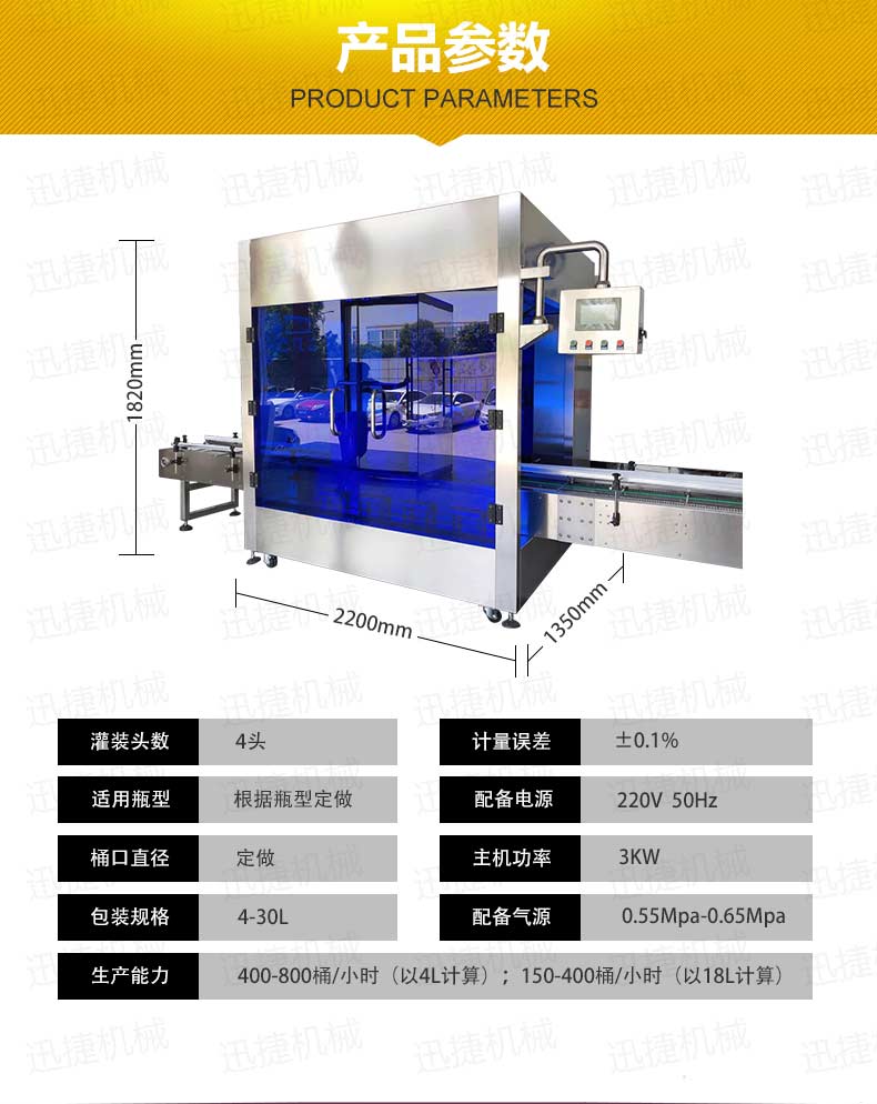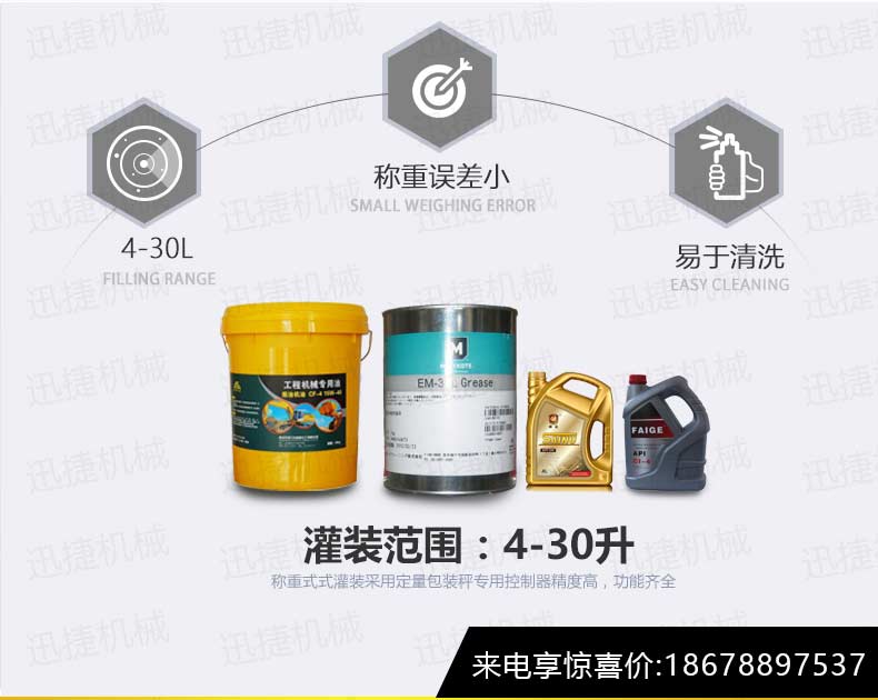 機油灌裝機適用于對4kg-25kg汽車用品類產品:潤滑油、防凍液、車用尿素等液體灌裝。自動完成計數(shù)進瓶、計重量灌裝、輸送出瓶等一系列操作。 特別適用于潤滑油、水劑、食用油的定量灌裝,是食品,醫(yī)藥,化妝品以及精細化工等行業(yè)的理想灌裝機。本機采用可編程控制器(PLC)、高速工控組態(tài)軟件進行實時監(jiān)控的控制,使用調節(jié)方便。整機按GMP標準要求制作,各管路連接采用快裝方式,拆卸清洗方便,與物料接觸部位及外露部位均采用不銹鋼制造。整機安全、環(huán)保、安全、美觀、能適應各種不同環(huán)境工作。